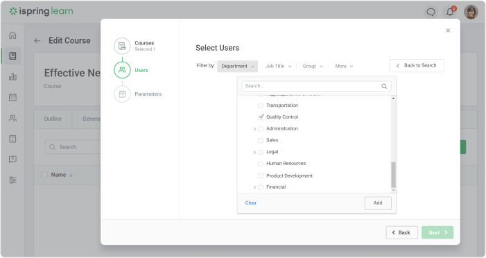 So learning management systems can easily solve this feeling of chaos and lack of instruction that new hires may have. Simply upload all the resources that will be useful for your new employees to your learning management system and share them whenever needed. Some learning management systems—iSpring Learn for example—also allow you to automate this and other tedious processes: set the parameters in your LMS system, and it will automatically assign the required online training materials to employees.
